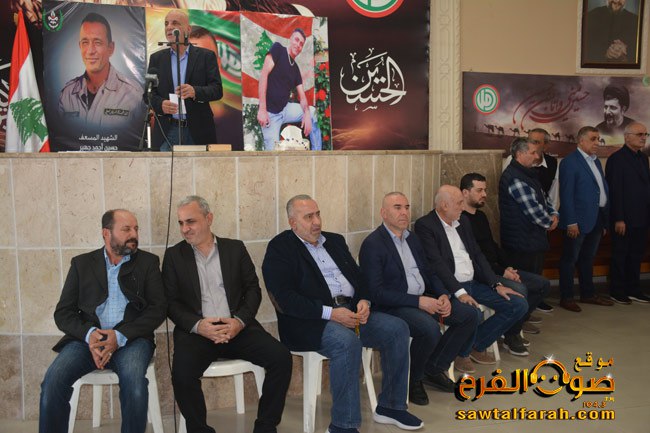 كلمة حر كة أمل ألقاها النائب علي خريس حيّا فيها الشهـ.داء الذين لم يتركوا أرضهم وكانوا ثابتين فيها ومؤمنين بقضيتهم، وصمدوا رغم التهديدات الإسرائيلية المتكررة على البلدات الحدودية والجنوبية، واستشهـ.دوا في شهر المغفرة والتقوى وشهر العودة الى الله، وهم الذين تعلموا من مدرسة الإمام القائد السيد موسى الصدر أن اسرائيل شر مطلق والتعامل معها حرام، وتعلموا معنى العطاء والتضحية والجهاد، “وهل هناك جهاد أكبر من أن تسقط في أرضك رغم التهديدات الإسرائيلية المتكررة؟”.
