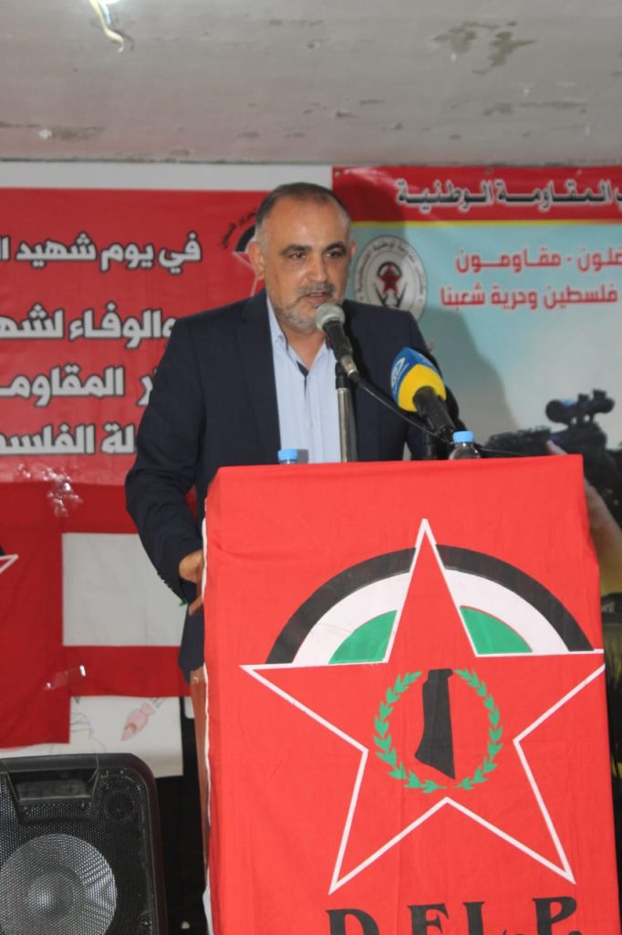 وكانت كلمة لكل من لبنان المقاوم القاها الاستاذ صدر الدين داوود مسؤول العلاقات اللبنانية الفلسطيني، وكلمة الجبهة الديمقراطية القاها نائب الامين العام الرفيق المناضل علي فيصل.