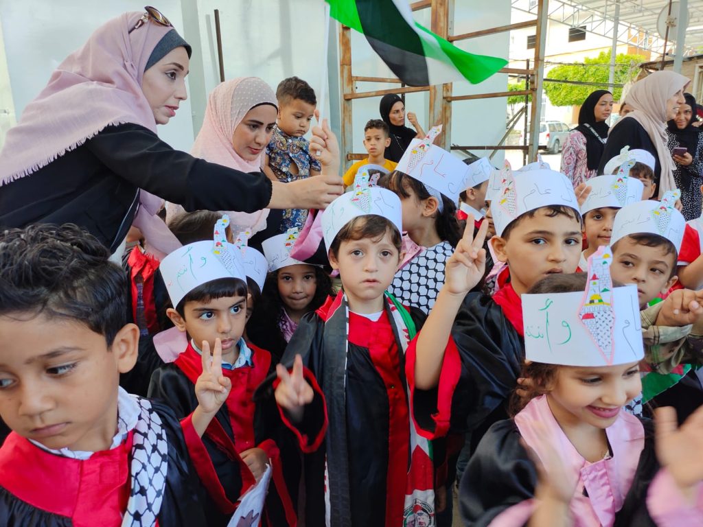 وتوجهت بالتهنئة والتبريك لطلاب الروضة بمناسبة انتهاء العام الدراسي متمنية لهم النجاح والتفوق في المستقبل، ودعت الأهالي للاعتناء باطفالهم وحثهم على متابعة النجاح من أجل بناء مستقبلهم وليكونوا قادة فلسطين وجنودها نحو النصر والتحرير والعودة، ووجهت التحية للقيادة الفلسطينية الحكيمة وعلى رأسها فخامة الرئيس محمود عباس “أبو مازن” الثابت على الثوابت الوطنية، والذي يعمل من أجل تحقيق حلم شعبنا الفلسطيني في إقامة دولته المستقلة كاملة السيادة وعاصمتها القدس الشريف.