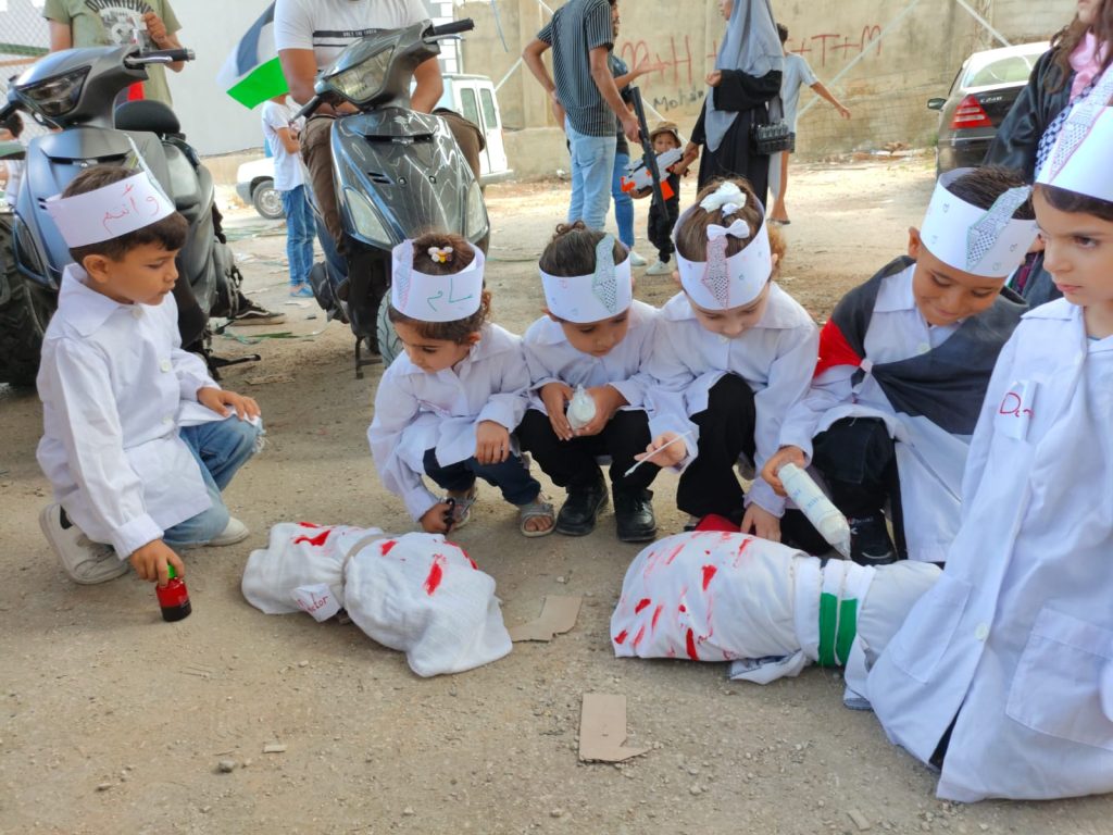نظمت روضة الشاطئ التابعة للإتحاد العام للمرأة الفلسطينية في تجمع الشبريحا جنوبي لبنان، حفل تخريج طلابها للعام الدراسي ٢٠٢٣ – ٢٠٢٤ بعنوان كرنفال (شهداء أطفال غزة) وذلك بحضور الأخوات في الإتحاد العام للمرأة الفلسطينية ومعلمات الروضة وأهالي الطلاب والطالبات حاملين الأعلام الفلسطينية ويافطات تحمل عبارات عن شهداء أطفال غزة، حيث صدحت حناجر الحضور واطفال الروضة بعبارات منددة بجرائم الاحتلال الصهيوني الفاشي بحق شعبنا واطفاله بعزة وكما تخلل الوقفة أناشيد وطنية ومجسمات للشهداء الاطفال بقطاع غزة.