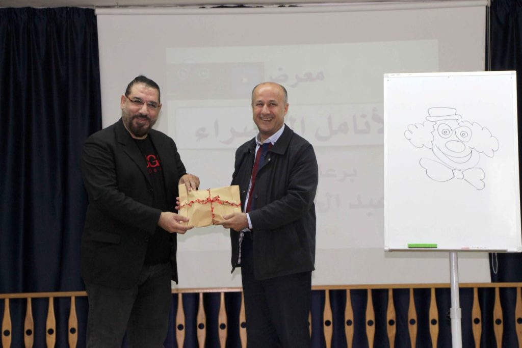 بعد ذلك كرمت ثانوية السفير الفنان حمود، فقدم له المدير ناصر الدين هدية تذكارية ، قام بعدها برفقته والأطفال المشاركين بافتتاح المعرض، وجالوا في أرجائه بحضور عدد من الأهالي مطلعين على ما أبدعته أناملهم الخضراء ومخيلاتهم الخصبة ، لوحات ورسومات منوعة ، وتشكيلاً وزخرفًة على الورق والكرتون ، ومشغولات يدوية ، عبّرت مجتمعةً عن ذوق فني رفيع وبصمات إبداعية صاغتها أناملهم الخضراء التي لونت أجنحة المعرض وممراته بألوان الفرح والبهجة وشعّت أفكارًا خلّاقة ومواهب واعدة .