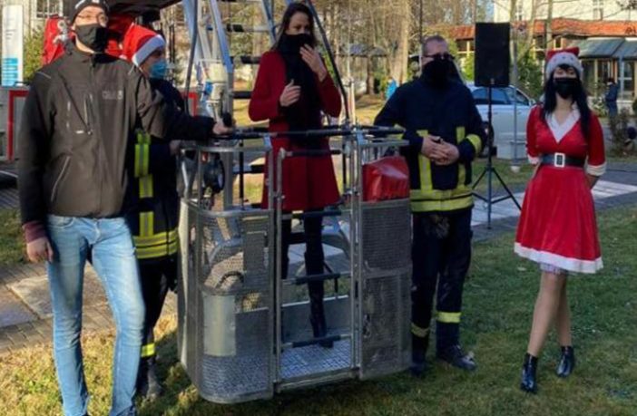 وأضافت: “سألنا مغنية البوب نيكي شوبرت، وهي مغنية معروفة في ساكسونيا، عما إذا كان بإمكانها غناء ترانيم عيد الميلاد لـ94 نزيلاً في دار مسنين، من سلم دوّار لوحدة الإطفاء”.