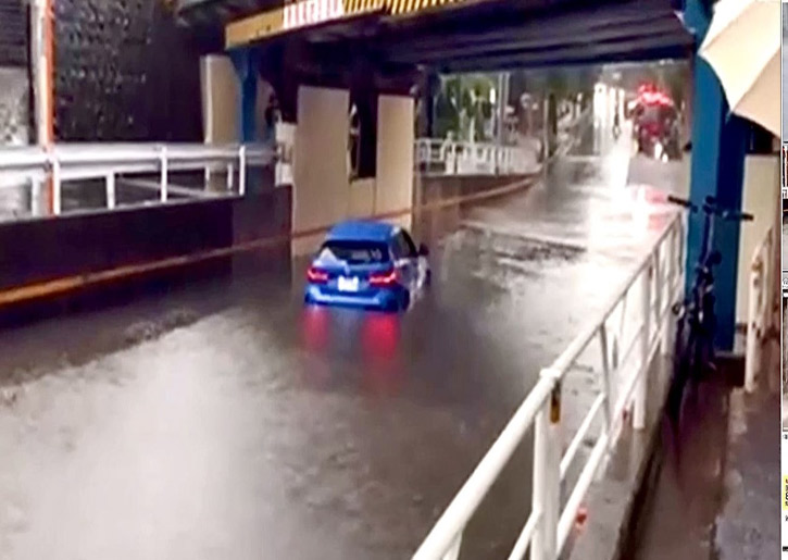 وتسبب ذلك في إلغاء أو تأخيرعشرات القطارات والتأثير على آلاف الأشخاص. وقد تغير الطقس فجأة مساء السبت، خاصة في منطقة كانتو، وحدثت عواصف رعدية حيث تدفقت مياه الأمطار بقوة ولم يتمكن نظام الصرف الصحي من احتواء الهطل الغزير المترافق مع رياح قوية والرعد والبرق. وغمرت المياه بعض الانفاق وسيارات الأجرة وغيرها. وحصل طوفان على سطح بناء في مركز طوكيو قرب حي شيبويا حيث شوهد أحد السكان يفرّغ المياه بوعاء كبير إلى الشارع من الطابق الخامس. وفي حي نيريما بطوكيو، لوحظ هطول الأمطار الغزيرة حيث بلغ معدل الهطول 33 ملم في الساعة. ودّوى الرعد في عدة مناطق في العاصمة بما يشبه صوت الانفجارات. وشوهدت المياه تتدفق إلى المترو تحت الأرض في محطة ايكيبكرو المزدحمة.
