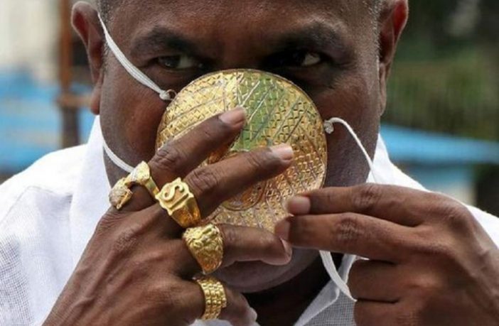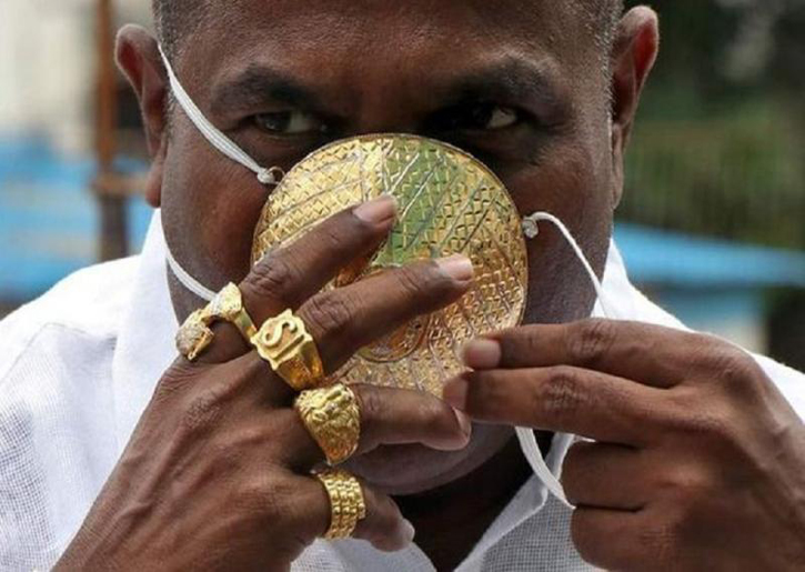 كورادا ثري هندي يعيش في ولاية ماهارا، حرص على ارتداء كمامة صُنعت من الذهب، وهو ما أكد عليه في تصريحات له نقلتها وسائل الإعلام، قائلًا إن عائلته لديها عشق لا متناه للذهب، ويهوون ارتداءه في كل المناسبات، لذا طلب من الصائغ صنع كمامة من الذهب، بعد أن رآى في السابق شخصا يرتدى كمامة من الفضة، مؤكدًا أن كمامته الذهبية تكلفت أربعة آلاف دولار.