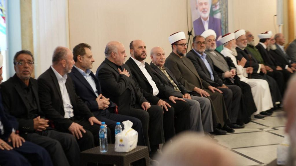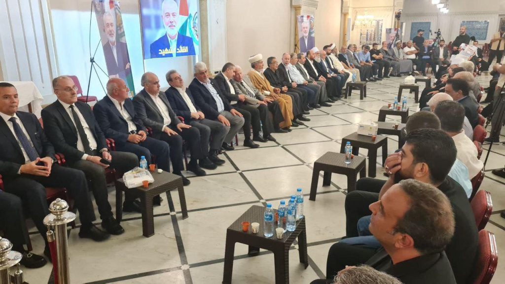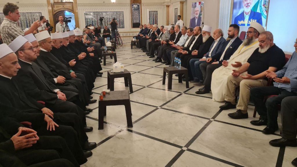 تقبّلت حركة المقاومة الإسلامية حماس في لبنان، التعازي والتبريكات باستشهاد رئيس مكتبها السياسي الشهيد القائد إسماعيل هنية، وذلك يوم أمس الأربعاء في قاعة الشهيد رفيق الحريري في مسجد الأمين وسط بيروت. حيث أمّت القاعة وفودٌ حزبية وشخصيات رسمية سياسية وعلمائية، وقد كان في استقبالهم ممثل الحركة في لبنان الدكتور أحمد عبد الهادي، وأعضاء القيادة السياسية للحركة في لبنان.