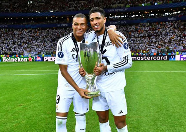 امتدح جود بيلينجهام، لاعب وسط ريال مدريد، زميله الفرنسي كيليان مبابي، في حديثه بعد التتويج بكأس السوبر الأوروبي.