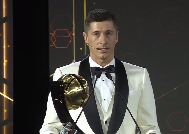 فاز البولندي روبرت ليفاندوفسكي بجائزة أفضل لاعب في العالم لعام 2020، المقدمة من جوائز دبي جلوب سوكر، بالشراكة مع مؤتمر دبي الرياضي الدولي، عضو مبادرات محمد بن راشد آل مكتوم العالمية.