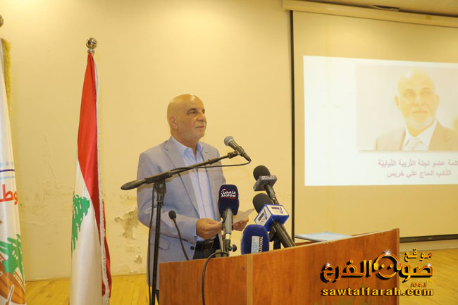 وختم بدعوة الأسرة التربوية جمعاء الى الوقوف يداً بيد في مواجهة التحديات وللمدارس الخاصة دور رئيسي في هذا المجال، والرسالة الأولى هي اتاحة الفرصة لجميع الفئات من المجتمع للحصول على المعرفة وليس تحقيق الارباح المادية على حساب الطلاب، مؤكدا العمل على اقتراح قانون لوضع حد لفوضى الأقساط، داعياً جميع المدارس الخاصة للوقوف الى جانب الطلاب النازحين من القرى الحدودية لعدم ضياع العام الدراسي عليهم، ” لأهل الجنوب حق علينا فهم يدافعون عن كرامتنا وسيادتنا وشرفنا وعزتنا والانسانية جمعاء معلنا بالتعاون مع النائب أشرف بيضون عن تقديم منحة نازح لكل طالب نازح من القرى الحدودية الى البقاع الغربي وراشيا ويرغب بالتسجيل في المدارس الخاصة التابعة لمؤسسات الغد الأفضل اكراماً لتضحيات أهلنا والشهداء والمجاهدين.