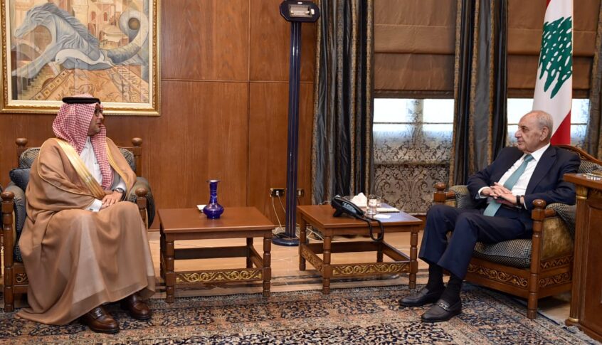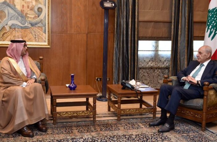 إستقبل دولة رئيس مجلس النواب الاستاذ نبيه بري في مقر الرئاسة الثانية في عين التينة السفير السعودي في لبنان وليد البخاري حيث جرى عرض للأوضاع العامة في لبنان والمنطقة والعلاقات الثنائية بين لبنان والمملكة العربية السعودية.