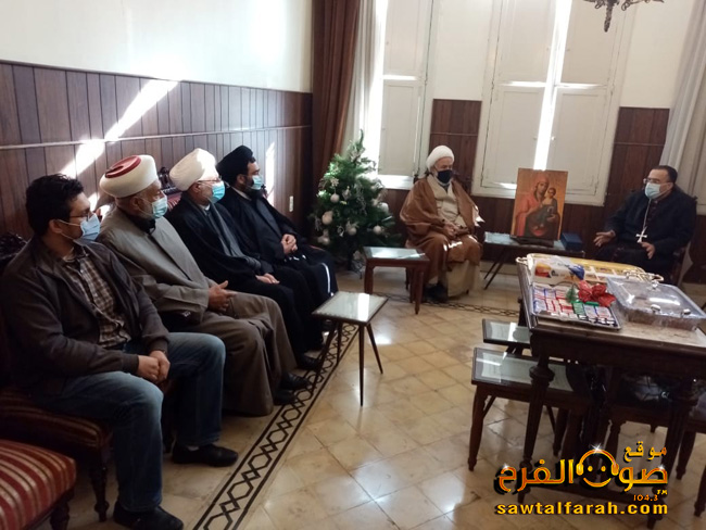 زار رئيس لقاء صور ومنطقتها العلامة الشيخ علي ياسين العاملي مع وفد علمائي كلا من مطران صور ومرجعيون للموارنة شربل عبد الله ومتروبوليت صور لطائفة الروم الملكيين الكاثوليك المطران ميخائيل أبرص مهنئا بالميلاد ورأس السنة وجرى خلال التهنئة استعراض الواقع العام في لبنان.
