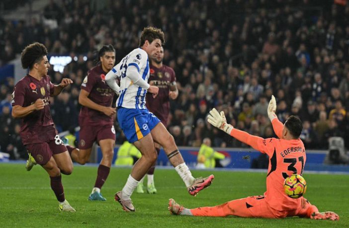 ونجح جواو بيدرو في تسجيل هدف التعادل لصالح برايتون عند الدقيقة 78، مستغلاً حدوث دربكة في دفاعات مانشستر سيتي.