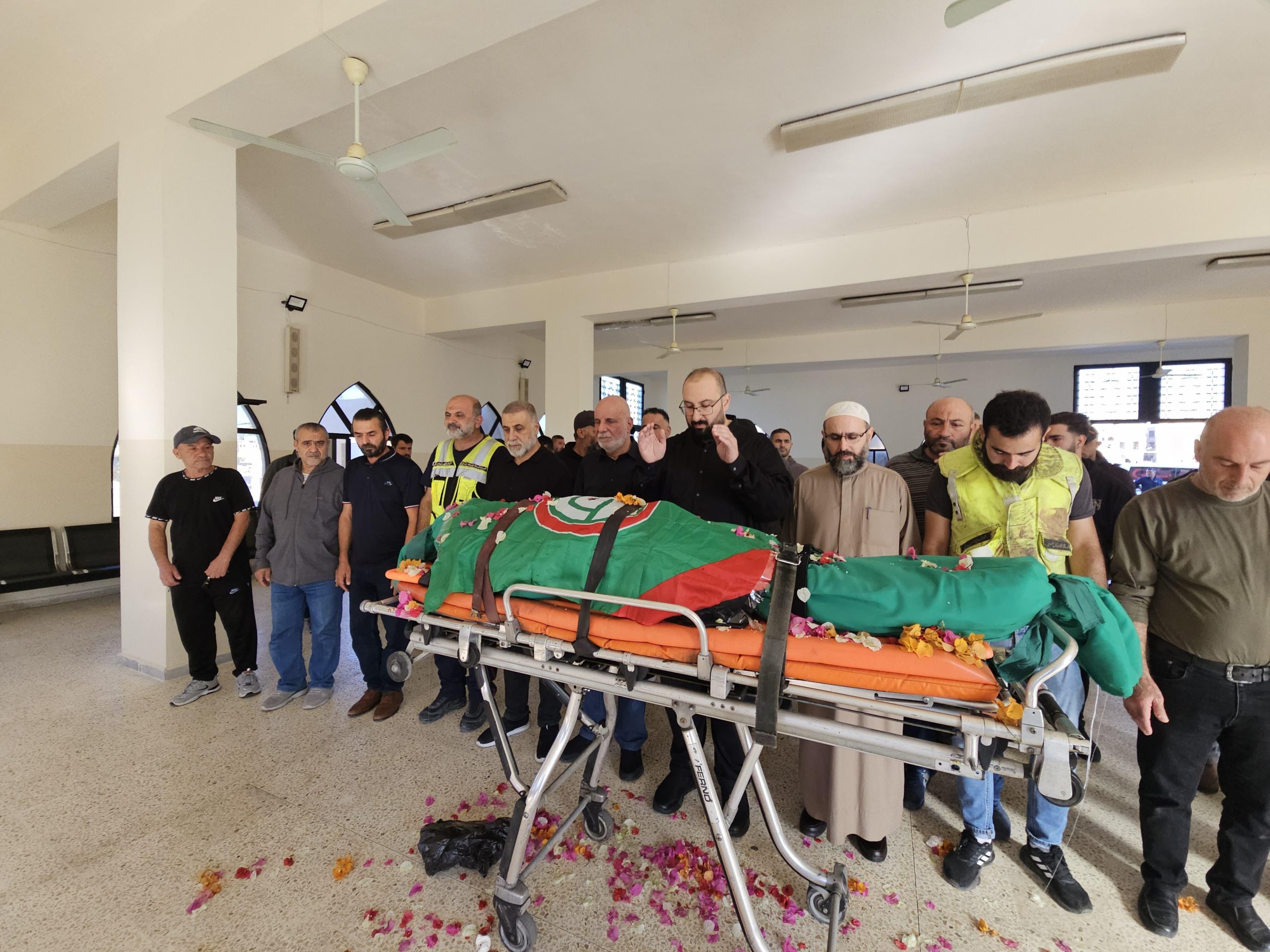 وقد أمّ الصلاة على الجثمان الطاهر في مدينة صور فضيلة الشيخ ربيع قبيسي، بعدها انطلق الموكبين باتجاه بلدة البياض حيث ووري الشهيد الثرى.