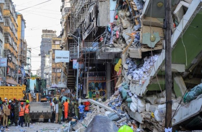 وانهار المبنى المكون من أربعة طوابق في سوق كارياكو شرق دار السلام في الأول من أمس السبت.