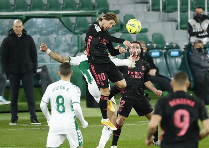وأضاع كريم بنزيما، فرصة تسجيل هدف الفوز في الدقيقة 89، حيث تلقى كرة عرضية من مودريتش وسددها بالرأس، لكنها مرت بجانب القائم الأيسر.