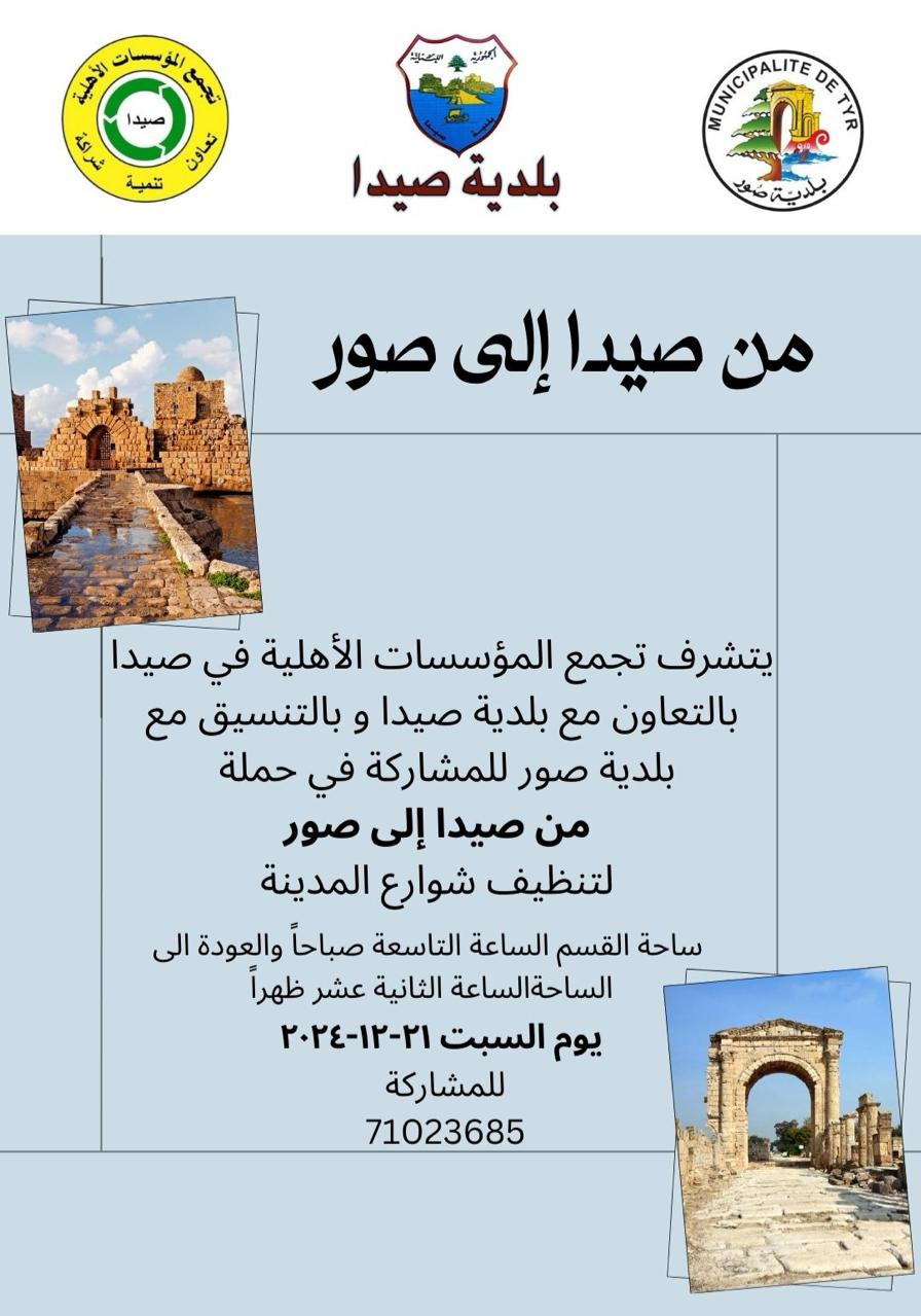 محليات من صيدا الى صور.. حملة لتنظيف شوارع المدينة يوم السبت By F.S ديسمبر 19, 2024 لا توجد تعليقات صور صيدا