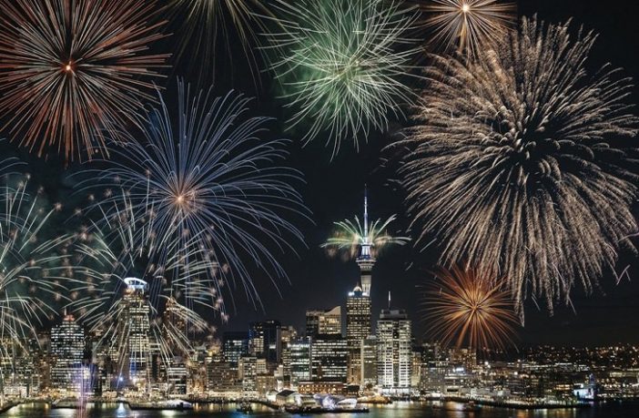 وشاهد الآلاف من المواطنين في فيكتوريا سانت ويست في وسط أوكلاند، عروض الليزر والألعاب النارية على برج “سكاي تاور” الذي يبلغ ارتفاعه 328 مترا.