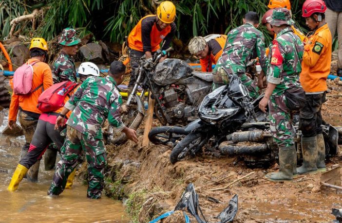 وأظهرت مقاطع فيديو وصور نشرتها الوكالة الوطنية للبحث والإنقاذ عمال الإنقاذ وهم يحفرون بشدة في القرى التي تحولت فيها الطرق وحقول الأرز الخضراء المتدرجة إلى طين بني غامق، وغطت القرى بالطين الكثيف والصخور والأشجار المقتلعة. وقال المتحدث باسم وكالة إدارة الكوارث الوطنية، عبد المهاري، إن الفيضانات تسببت في انهيار أرضي طمر منزلين ومقهى في منطقة منتجع بيتونجكريون.
