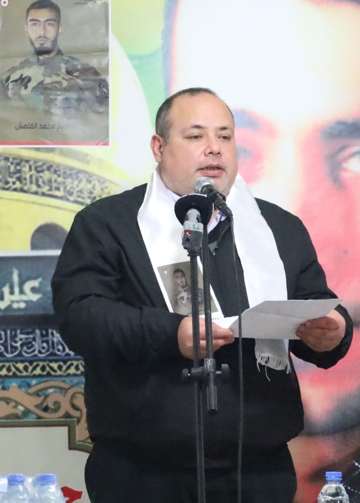 “ابراهيم قلمش” المقاتل المقاوم المناضل ، نودّعُه اليومَ وداعَ الأبطال، هو الذي أبى إلا أن يوقّعَ بدمائِه على هذه المعركة، واقفاً وقفة عزّ بوجهِ جَبَروت المحتل، كاسرًا إيّاه رافضاً إجتياح لبنان، ممانعًا أن يَمنحَ العدو طريقاً توصِله إلى الداخل.