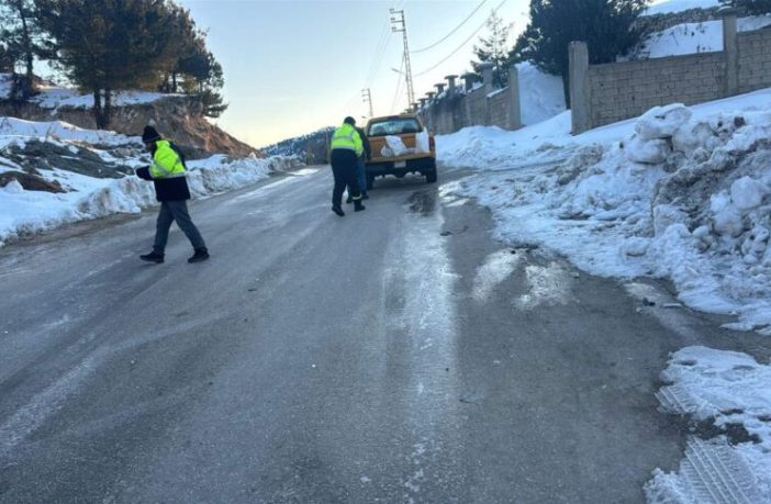 طريق الأرز – عيناتا مقطوعة بسبب تراكم الثلوج