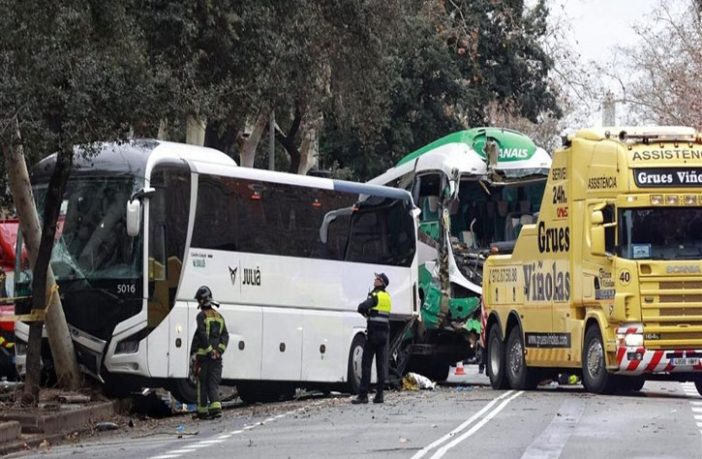 واصطدمت الحافلة الإيطالية بحافلة أخرى فى شارع دياجونال، أحد الشوارع الرئيسية في برشلونة، والتي كانت متوقفة على جانب الطريق للسماح بركوب سائحين من سفن رحلات بحرية، حسبما ذكرت قناة “ار تي في اي” التلفزيونية ووسائل إعلام أخرى، نقلاً عن شهود عيان.