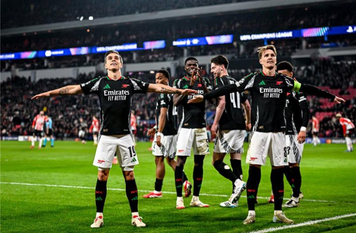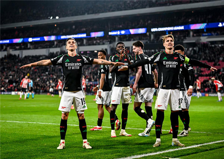 وضع فريق آرسنال قدمًا في ربع نهائي بطولة دوري أبطال أوروبا، موسم 2024/25، بعد فوزه الكبير على خصمه فريق آيندهوفن، مساء يوم الثلاثاء.