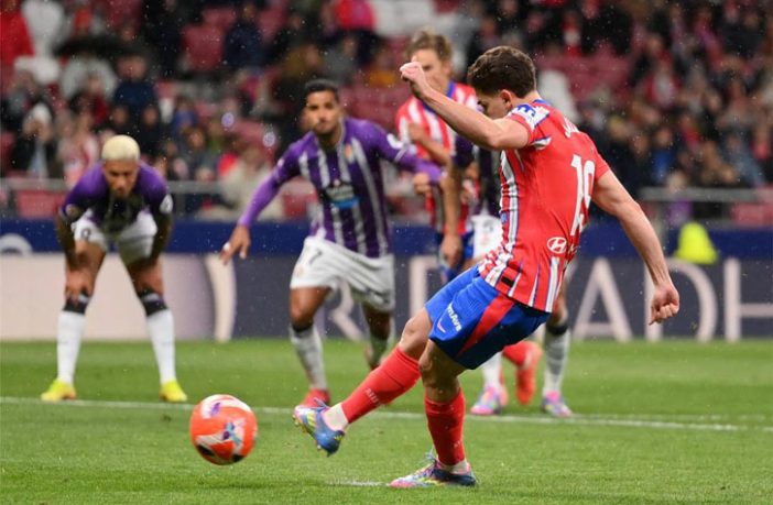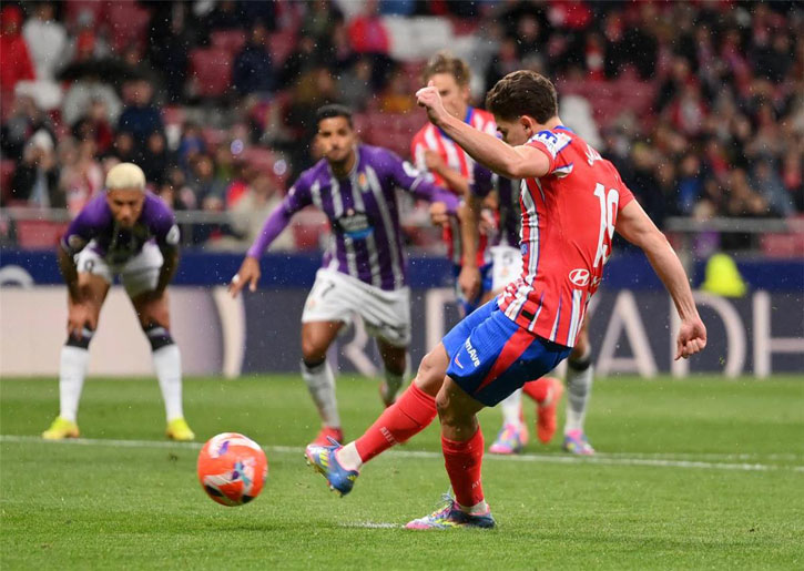 ولكن تفوق الضيوف لم يدم طويلًا، حيث تمكن أتلتيكو مدريد من الحصول على ضربة جزاء نفذها جوليان ألفاريز بنجاح، ليحولها إلى هدف التعادل في الدقيقة 25.