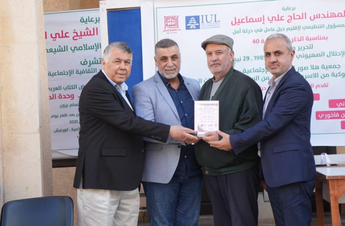 برعاية المسؤول التنظيمي لإقليم جبل عامل في حركة أمل المهندس علي إسماعيل وضمن فعاليات معرض الكتاب العربي العاشر وبمناسبة الذكرى السنوية 40 لتحرير مدينة صور من رجس الإحتلال الصهيوني، أقامت جمعية هلا صور الثقافية الإجتماعية الحفل التكريمي السابع لكوكبة من الأسرى المحررين: المناضل كامل جولاني، المناضل أحمد علي عكاوي، المناضل عباس حسن فاخوري، المناضل قاسم حسين سالم و المناضل كمال طه وذلك في مبنى الجامعة الاسلامية في صور.