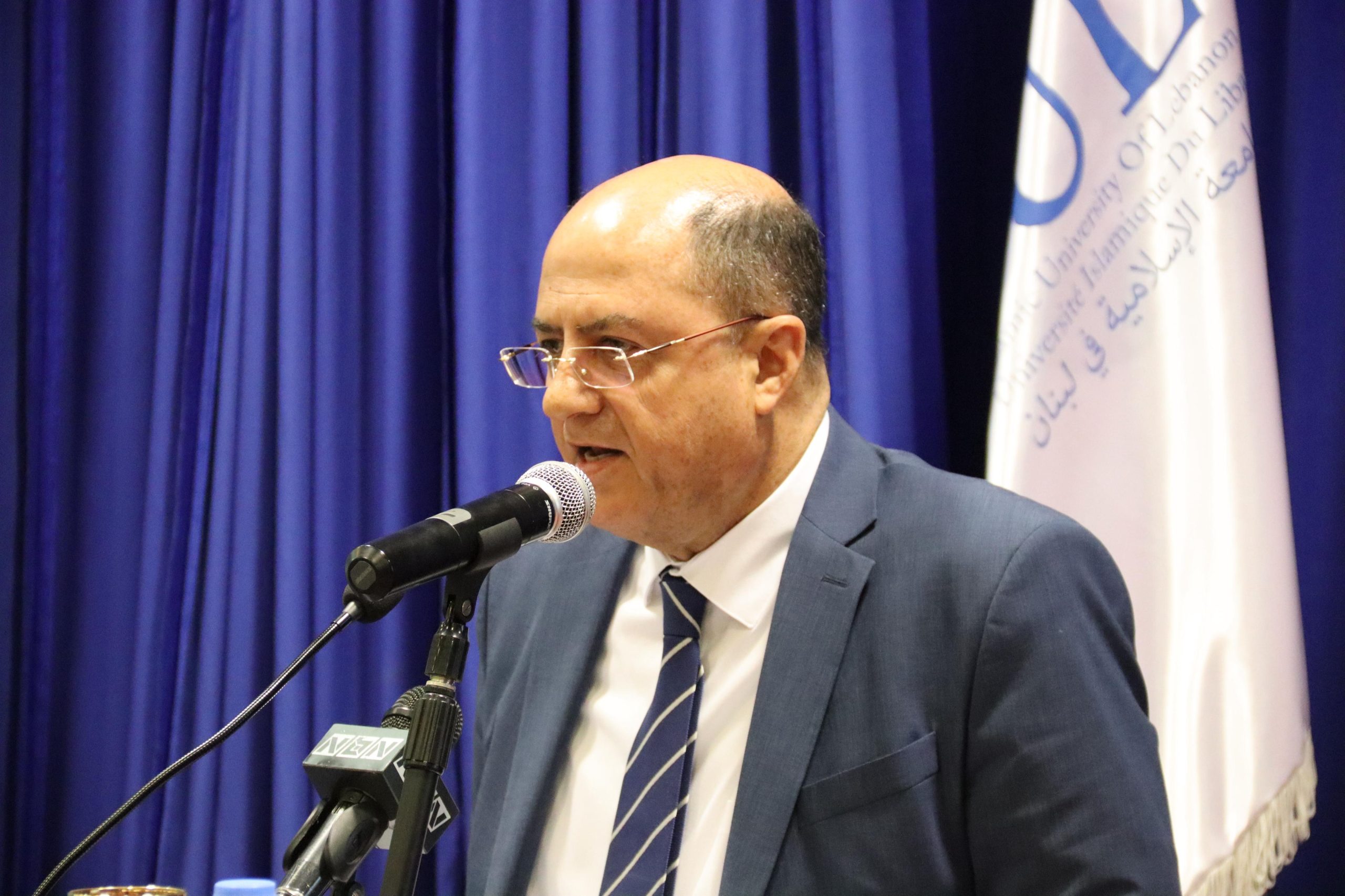 وختم بالقول: أتوجه بالشكر والتقدير لعميد كلية الدراسات الإسلامية على هذا الجهد العلمي البحثيّ الرّصين، في جمع رؤية العلّامة الخطيب وتحليلِها وتقديمِها في قالبٍ أكاديميّ وفكريّ، يُضاف إلى سجلّ الجامعةِ الغني بالمبادرات العلميّة الهادفة. وأدعو أساتذتنا، طلابَنا وباحثينا إلى قراءة هذه الكتب والتفاعلِ معها، لما تحمله من فكر نقدي بنّاءٍ ورؤيةٍ جامعة صادقة. وأجدّد العهدَ بأن تبقى الجامعةُ الإسلاميّة منارةَ علم، ومنبرَ حوار، وحاضنةً للفكر الذي يبني ولا يهدم، يقرّب ولا يُقصي. أهلاً بكم جميعًا في جامعتكم، ودمتم منارةً للعلم والوحدة والتنوير.
