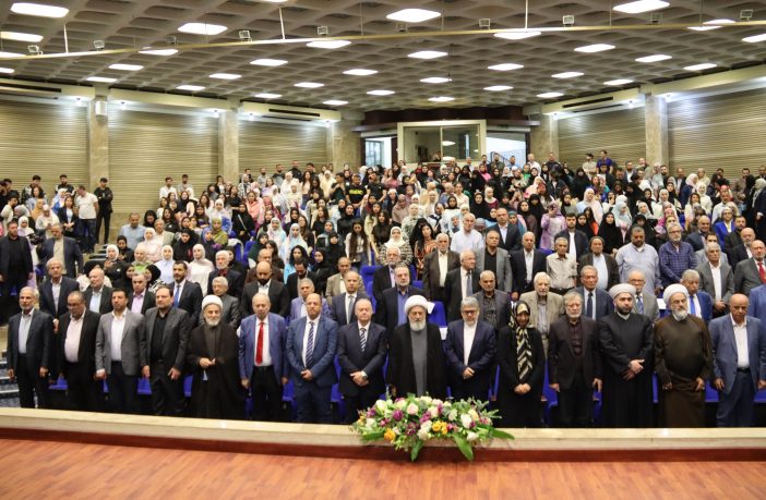 واضاف… أما العلامة الخطيب، فهو كما نعرفه، صاحبُ فكر نهضوي، وهو صوتٌ عقلانيّ في زمن الانقسام، رمزٌ للاعتدال والانفتاح، يؤمنُ بأنّ العيشَ المشترك ليس ترفاً بل خيارا وجوديا، يرى في المواطنةِ عقدًا جامعًا لا يُقصي أحدًا، وفي العيش المشترك ضرورةً أخلاقية ووطنيةً لحفظ السلم الأهلي وبناءِ مستقبلٍ يليق بأبنائنا جميعًا.وإيماناً من الجامعة بهذه القيم، فإنّها ما فتِئت تؤكّد في برامجها ومناهجها وأبحاثها ورؤيتِها ورسالتها واستراتيجياتها، ترسيخ مفاهيمِ المواطنة الحاضنة للتنوّع، والعيشِ المشترك الّذي يصون التّعدّديّةَ ويمنع الانزلاقَ إلى خطاب الكراهيّة والتهميش. وفي سياق هذا الالتزام، تواصل جامعةُ العلم والقيم أداءَ دورِها الوطني والتربوي من خلال مشاريعها وبرامجٍها الأكاديمية والإدارية والمجتمعية ترجمة عمليّة لرؤيتِها الفكرية الثقافيّة. فقد تبنّت الجامعةُ سياسةَ الدعم المجتمعي المستدام، وكان من أبرز معالمِها تقديمُ المنح. وفي الإطار نفسه، أطلقت الجامعةُ من خلال مراكزَ علاجيةٍ متخصصة تقدّم خدماتِ تقويمِ النطق والعلاج الفيزيائي ضمن نهج صحي مستدام، وفعّلت مشاريعَ الرعاية الصحية أكاديمياً، واصلت الجامعةُ ترسيخَ مكانتها مؤسسةٍ تعليمية رائدة وحرصت على تعزيز البحث العلمي بدعم مراكز الأبحاث، وتحفيزِ النشر العلمي في مجلات محكمة، ما يسهم في تعزيز التصنيفِ الأكاديمي للجامعة. كما وسّعت الجامعةُ آفاقِ التعاون، من خلال توقيع اتفاقيات تعاونٍ ومعاهداتِ مع جامعاتٍ ومؤسساتٍ تعليمية محلّية ودوليّة، كان آخرها توقيع إتفاقية تعاون مع الجامعة الدولية في الكويت.فنحن لا نُعلّم فقط، بل نبني إنساناً، نرعى مجتمعاً، ونشارك في صناعة المستقبل. وسنستمر بهذا النهج، مستمدّين العزمَ من إيماننا برسالة الامام المغيب السيد موسى الصدر، ومن تعاليم دولة الرئيس نبيه برّي، ومن ثقة المجتمع بنا.