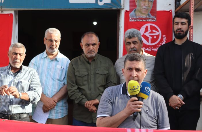 وخلال الوقفة، ألقى المسؤول الإعلامي لحركة “فتح” في منطقة صور، الحاج محمد بقاعي ابو عادل ، كلمةً نقل في مستهلها تحيات اللواء توفيق عبدالله إلى الرفاق في الجبهة الشعبية، وفي مقدمتهم الأمين العام الأسير أحمد سعدات، وإلى جميع الأسرى والمعتقلين الأبطال الصامدين خلف قضبان الاحتلال.
