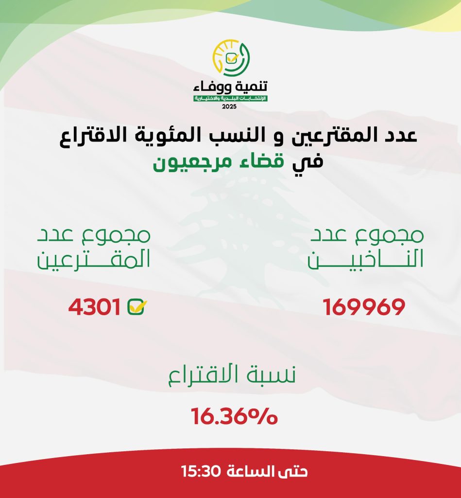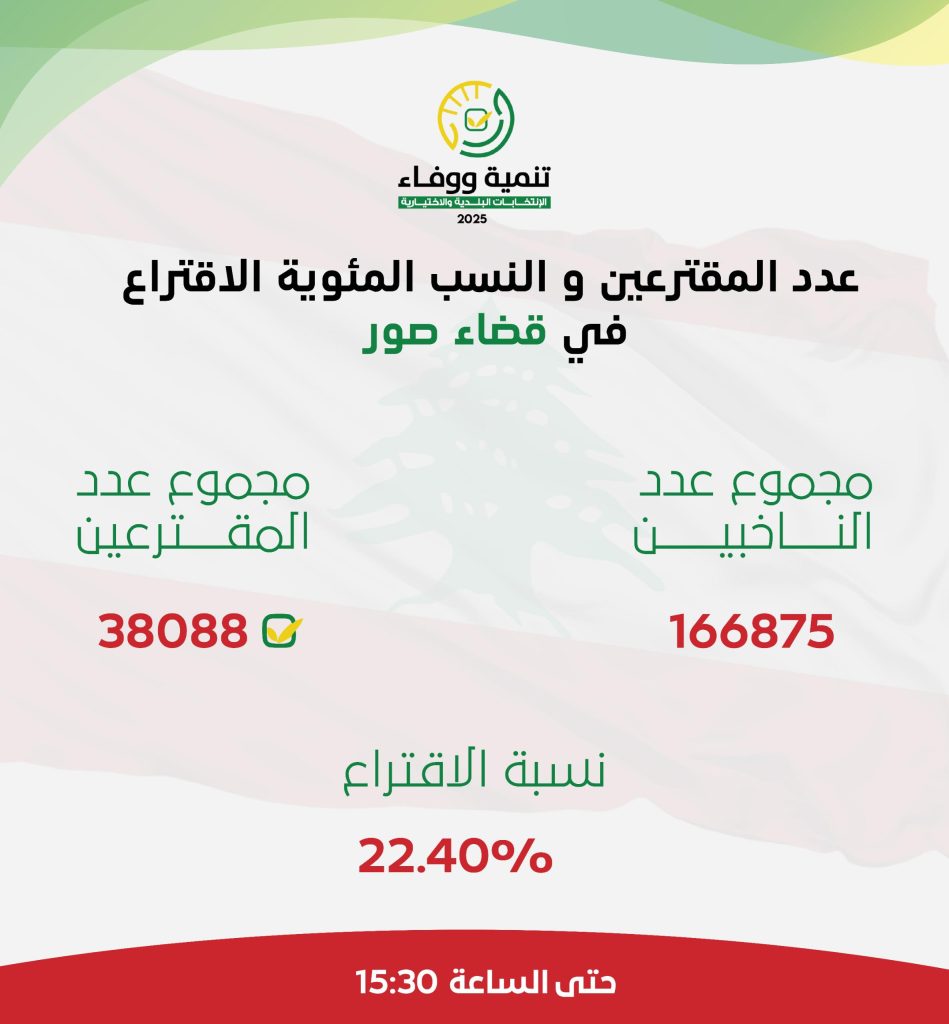 محليات عدد المقترعين والنسب المئوية للإقتراع في أقضية صور وبنت جبيل ومرجعيون By F.S مايو 24, 2025 لا توجد تعليقات المقترعين