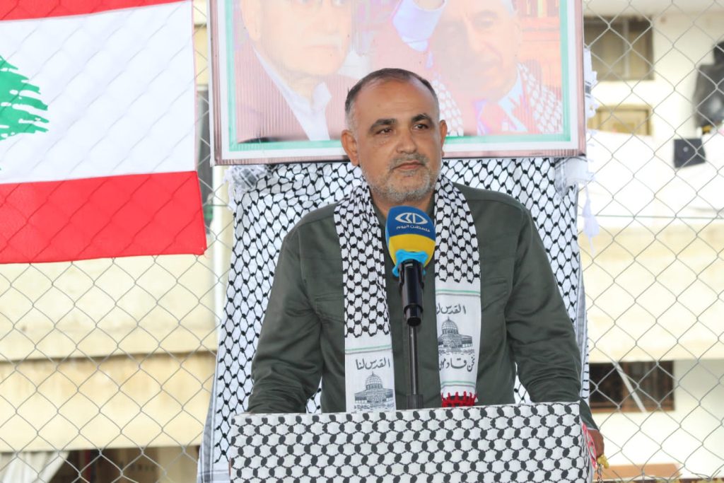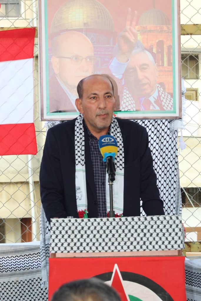 بداية النشيدين الفلسطيني واللبناني ، ثم القى يوسف احمد كلمة اكد فيها أن العدو الاسرائيلي يرتكب جرائم إبادة جماعية بحق الشعب الفلسطيني في غزة ، وقال ان استبدال المساعدات المالية بالمساعدات الغذائية للاجئين الفلسطينيين فهي دليل على المؤامرة بحق الشعب الفلسطيني في الشتات.