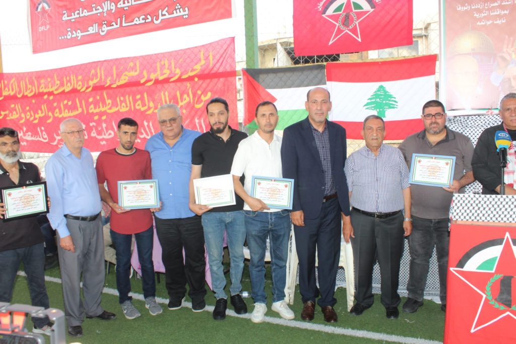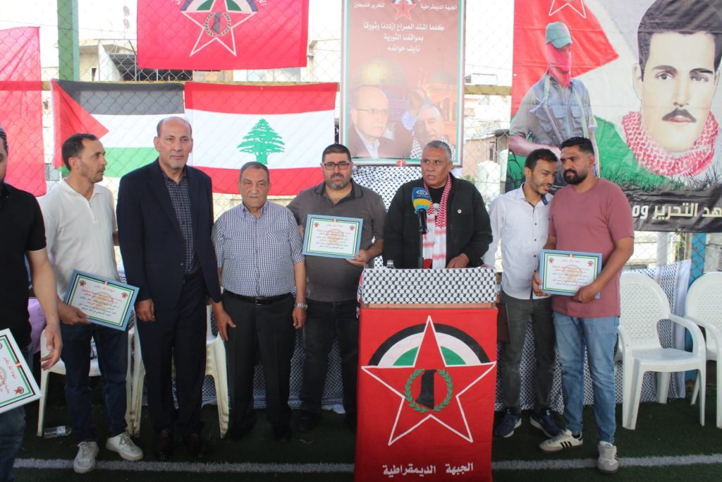أقامت الجبهة الديمقراطية لتحرير فلسطين مهرجانا سياسيا بمناسبة اليوم الوطني لشهيد الجبهة ودعما للشعب الفلسطيني في صموده ومقاومته في مواجهة العدوان الاسرائيلي وذلك في المركز الثقافي الفلسطيني في مخيم البرج الشمالي – صور ، بحضور مسؤول الجبهة في لبنان حسين عيد، مسؤول الجبهة في صور يوسف احمد ، مسؤول الملف الفلسطيني في صور عضو اقليم حركة امل في اقليم جبل عامل صدر داوود ، وممثلين عن الفصائل الفلسطينية في منطقة صور والجنوب وحشد من ابناء المخيم .