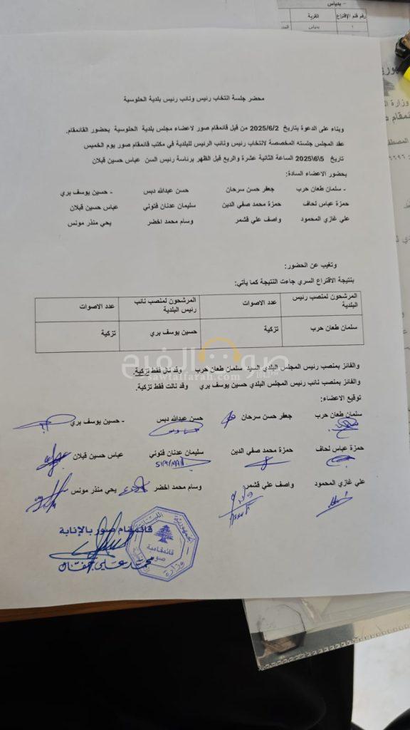 محليات سلمان حرب رئيساً لبلدية الحلوسية و حسين بري نائباً للرئيس By F.S يونيو 5, 2025 لا توجد تعليقات الحلوسية