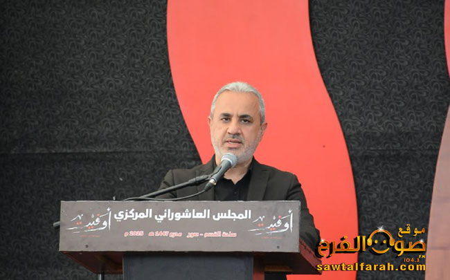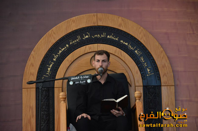 بعد تلاوة آيات من الذكر الحكيم بصوت القارئ علي الصباغ وتقديم من المسؤول الإعلامي لإقليم جبل عامل علوان شرف الدين، كانت السيرة الحسينية مع عميد المنبر الحسيني السيد نصرات قشاقش.