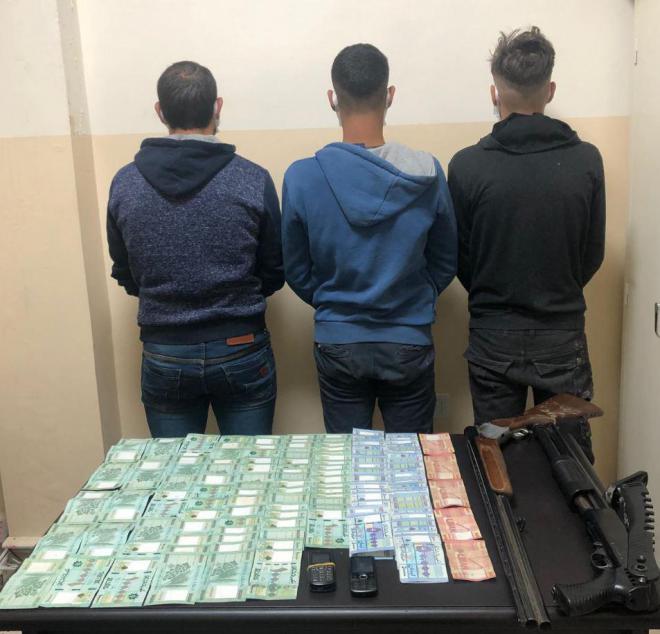 وبالتاريخ ذاته، نفّذت دوريات الشعبة مداهمات لأماكن تواجد المذكورين في منطقة حلبا، حيث تمكّنت من توقيف الأول والثاني والثالث بالتزامن، وتبيّن أن الرابع متوارٍ عن الأنظار. وبتفتيشهم وتفتيش منازلهم، تم ضبط مبلغ 11 مليون ليرة لبنانية وبندقيّتي الصيد المسروقتين.