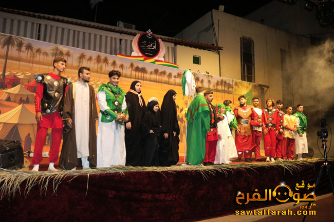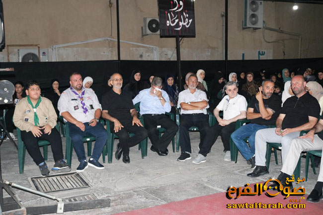 في أجواء أربعين الإمام الحسين (ع) وشهادة الإمام الحسن المجتبى(ع)، أقامت جمعية كشافة الرسالة الاسلامية فوج الإمام علي (ع) مركز صور عملاً مسرحياً تحت عنوان ” حين تكلّم الدم”، بحضور المفوض العام لجمعية كشافة الرسالة الإسلامية قاسم عبيد، المسؤول التنظيمي لحركة أمل في اقليم جبل عامل المهندس علي اسماعيل، الشيخ ربيع قبيسي ممثلاً مفتي صور وجبل عامل الشيخ حسن عبد الله، رئيس بلدية صور المهندس حسن دبوق، عضو قيادة اقليم جبل عامل نائب رئيس بلدية صور علوان شرف الدين، مفوض جبل عامل في جمعية كشافة الرسالة الإسلامية قاسم حيدر، مسؤول الشباب والرياضة في الإقليم الدكتور غسان جابر، مدير عام الريجي المهندس ناصيف سقلاوي ممثلا بالسيد أحمد فرج، القيادي ابو ياسر عون، رئيس جمعية تجار صور ديب بدوي، ممثل حزب الله في صور، أعضاء مجالس بلدية ومخاتير وفعاليات وقيادات حركية وكشفية وفعاليات اجتماعية وأهلية.