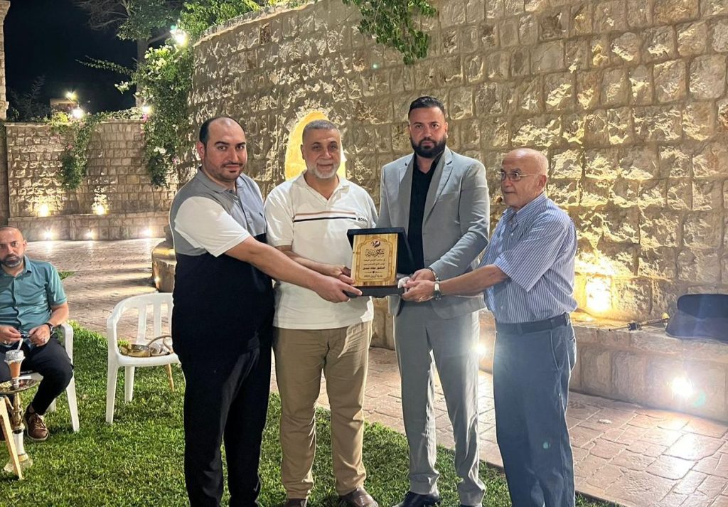 اقام رئيس بلدية ارزون السيد احمد الحسيني حفل تكريمي على شرف رئيس نادي التضامن صور الدكتور جهاد قنديل تقديراً لجهوده وعطاءاته