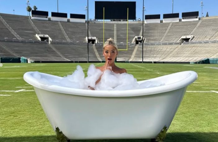 تجردت نجمة مواقع التواصل الاجتماعي ليفي دون من كامل ملابسها خلال جلسة تصوير إعلان لشركة المراهنات الرياضية “فاناتيكس سبورتس بوك”، وهي في حمام فقاعات داخل ملعب “روز بول”.