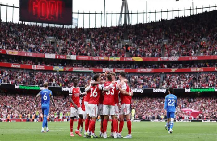 وتقدم آرسنال بهدف أول في الدقيقة 34 بعد ركلة ركنية نفذها ديكلان رايس، بعرضية داخل منطقة الجزاء، ليستقبلها تيمبر ويسجل في الشباك برأسية متقنة.