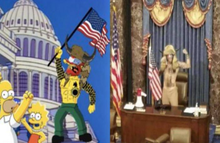 ونشر عدد من المعجبين بالمسلسل صورا للمقارنة جنبا إلى جنب ضمت أحد المشاغبين من أنصار ترامب وكان في زي الفايكينغ لالتقاط الصور في قاعة مجلس الشيوخ، والتي كانت تشبه إلى حد كبير شخصية في حلقة من عائلة سمبسون، حيث وقفت الشخصية فوق مبنى الكابيتول وكانت ترفع العلم الأميركي.