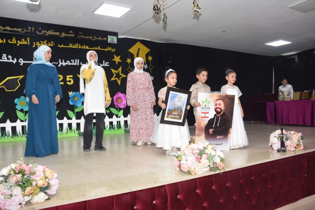رعى النائب الدكتور أشرف بيضون الاحتفال الذي اقامته مدرسة شوكين الرسمية لتخرّيج 107 من طلابها في صف التاسع للعام الدراسي 2024/2025 تحت عنوان “على درب التميز.. نخطو بثقة” ، وحضره ممثل النائب هاني قبيسي المسؤول التربوي لحركة أمل في إقليم الجنوب الدكتور عباس مغربل، ممثل النائب ناصر جابر محمد حجازي، مسؤول التعبئة التربوية في منطقة جبل عامل الثانية الدكتور حمزة شرف الدين، رئيس المنطقة التربوية في محافظة النبطية ممثلاً بميرنا نحلة، هيا بيطار من مكتب وزيرة التربية، رئيس بلدية شوكين حسين علي احمد، مديرة دار المعلمين في النبطية زينات عيد ،رئيس الدائرة الرياضية والكشفية في المنطقة التربوية في محافظة النبطية عبدالله عساف. رئيس دائرة المياه في النبطية المهندس حسن الحسين ، رئيس رابطة التعليم الاساسي الدكتور حسين جواد، مسؤول العمل البلدي في قطاع الشقيف علي زبيب، وفد من منتدى مدراء الثانويات الرسمية برئاسة فؤاد ابراهيم، وشخصيات ورؤوساء بلديات ومخاتير ومدراء مدارس وثانويات واهالي الطلاب