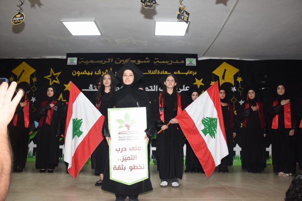 بعد دخول موكب الطلاب المتخرجين، وكلمة ترحيب من زينة امين ، والقى عدد من الطلاب كلمات باسم زملائهم المتخرجين ، ثم قدم طلاب مشهدية بعنوان “ العلم تصان الاوطان “
