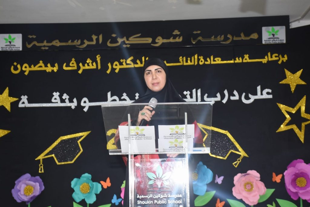 وتوجهت شعيب بالشكر والامتنان للنائب اشرف بيضون ، “فأنت صوت المدرسة الرسمية الصادح، صوت معلميها وكوادرها بمختلف اطيافهم ، فالمعلم في التعليم الرسمي حقه ان يشعر بالامان الوظيفي خاصة حين يكون صاحب ضمير حي، يعطي بكل طاقته ، يعلم ويربي ويعامل تلاميذه كما لو انهم اولاده ، هذا المعلم حقه ان يقدر في وطن يحترم العلم والمواطن ، وهذه القضية تحملها سعادة النائب بكل امانة ، وفقك الله فيما تسعى اليه من خير للمدرسة الرسمية ومعلميها وللتربية بشكل عام ، ونحن نحتفل اليوم بجيل واعد ، لا ننسى اننا نقف على ارض ليست مجرد تراب ، بل هي لوحة عز كتبها الشهداء بدمائهم ،وصاغوا تاريخها عبر السنين بتضحياتهم .