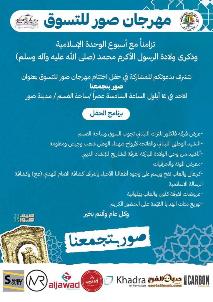 نتشرف بدعوتكم للمشاركة في حفل اختتام مهرجان صور للتسوق بعنوان صور بتجمعنا