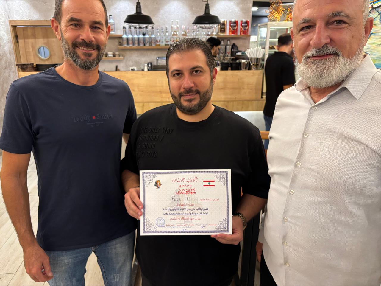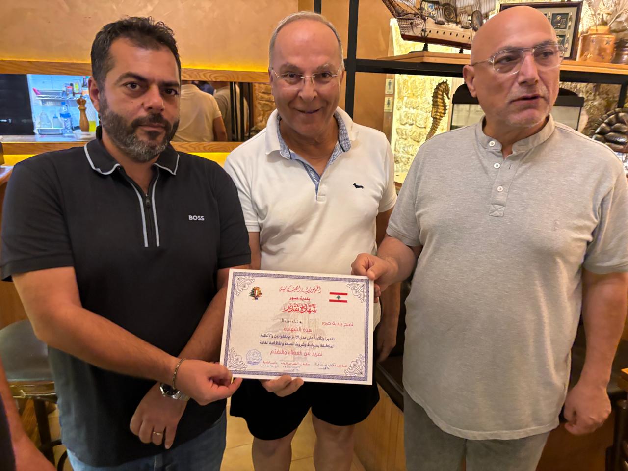 وقد تم تسليم الشهادات في المطاعم المعنية في مدينة صور من قبل لجنة الصحة في بلدية صور ، وذلك بعد سلسلة من الزيارات الميدانية والكشوفات الدورية التي تقوم بها اللجنة ، للتأكد من التزام المؤسسات الغذائية بمعايير الجودة والسلامة