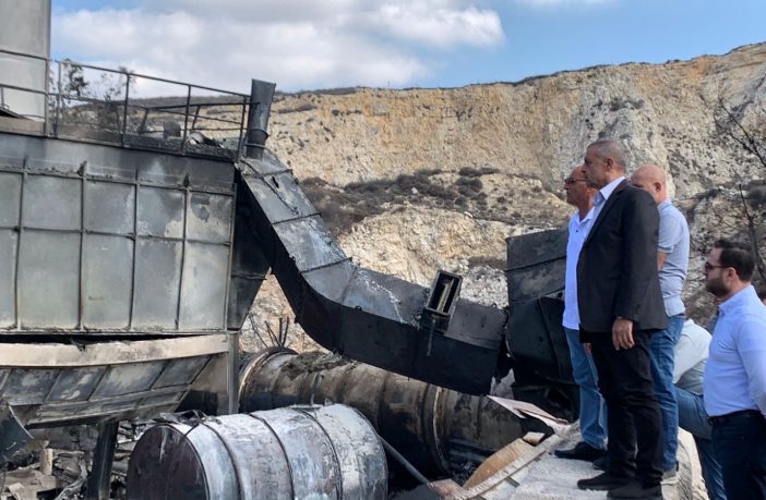 كما كانت جولة في منشات شركة الكسارات الوطنية التي دمرت الغارات المعادية كسارتها مباني الادارة فيها والعديد من الشاحنات والجرافات ومولدات الكهرباء.
