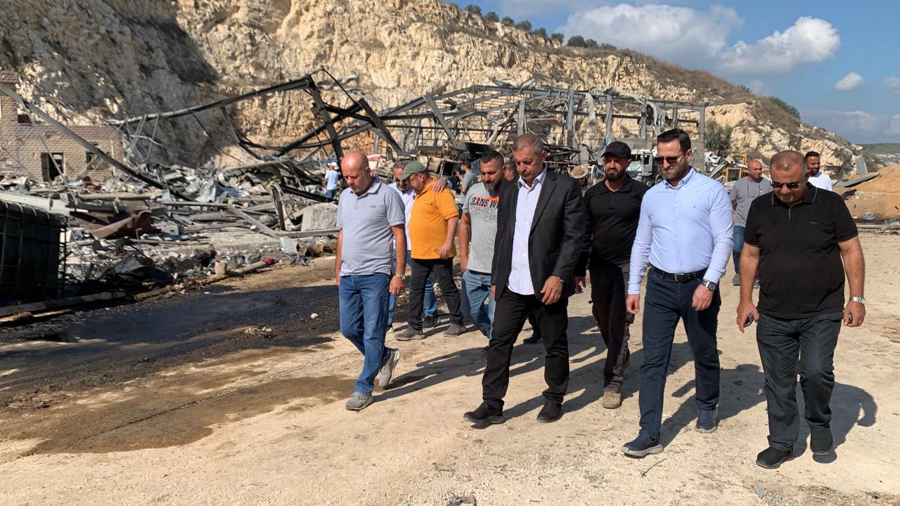 تفقد مدير مكتب الرئيس نبيه بري في المصيلح النائب هاني قبيسي المنطقة الصناعية في وادي بصفور -سيناي .اطراف انصار التي تعرضت لعدوان جوي اسرائيلي عنيف دمر منشأت شركة المجابل العاملية وشركة الكسارات الوطنية بشكل كامل، في واحدة من اعنف الاعتداءات الجوية بعد توقف حرب ال66 يوما .