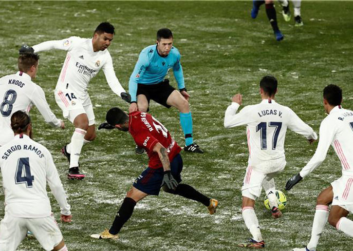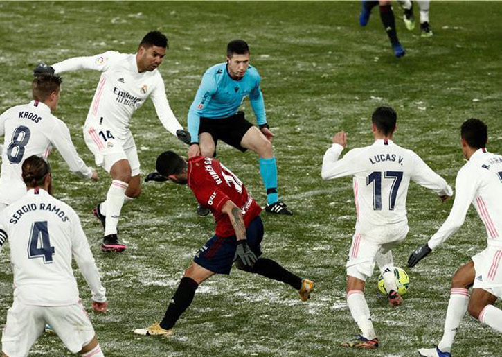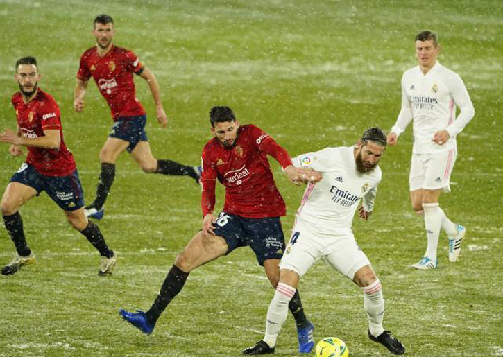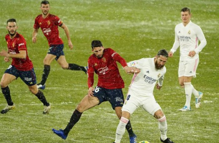 حسم التعادل السلبي مواجهة ريال مدريد ضد أوساسونا، مساء يوم السبت، في إطار منافسات الجولة 18 من الليجا، على ملعب أل سادار، والتي أقيمت في ظروف مناخية سيئة، بسبب العاصفة الثلجية التي هددت إقامة المباراة.