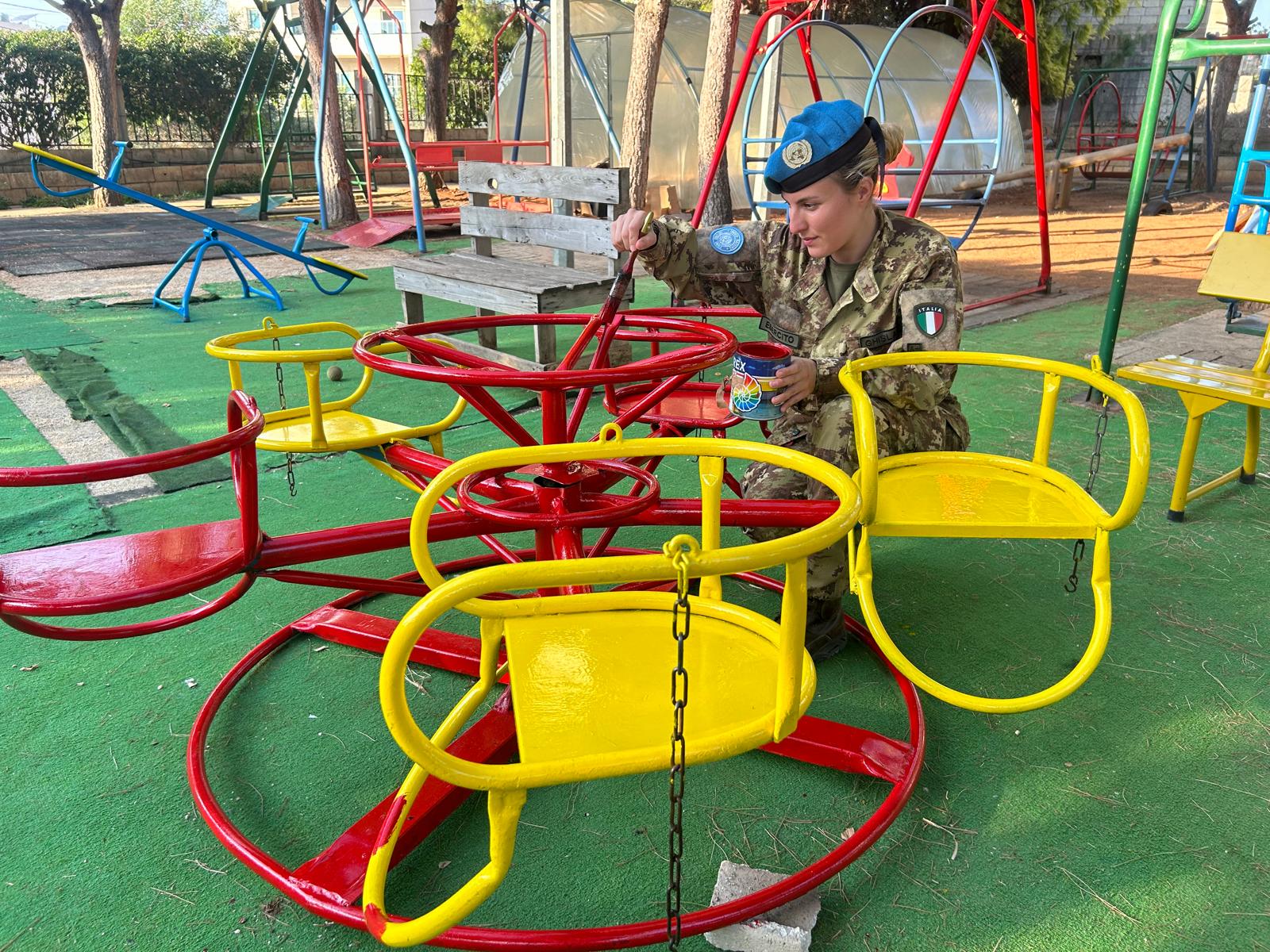 و من ثم انتقل العقيد دافيدي ماريني مع وفد من ضباط و جنود الكتيبة الى مركز مصان لذوي الاحتياجات الخاصة، ليطلع على أعمال اعادة تاهيل و صيانة للملعب الصيفي للمركز التي تقوم به الكتيبة الايطالية مركز المنصوري ، و كان في استقباله إدارة المركز السيد علي شرف الدين و السيدة نجاة سكماني حيث اعربوا عن كامل شكرهم للعقيد و للوفد المرافق للدعم التي تقوم به الكتيبة الإيطالية للمركز خاصة في هذه الظروف الصعبة. بدوره شكر قائد الكتيبة إدارة المركز معربا عن إعجابه و تقديره للدور الاجتماعي الذي يقدمه المركز ، مؤكدا على وقوف الكتيبة الإيطالية بجانب المؤسسات الرعائية غيرها من المؤسسات التي تاتي في عملية دعم المجتمع المدني.
